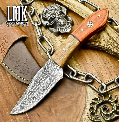 LMK Handmade Skinner Knife Ladder Damascus Hard Wood Wooden Bolster Tactical