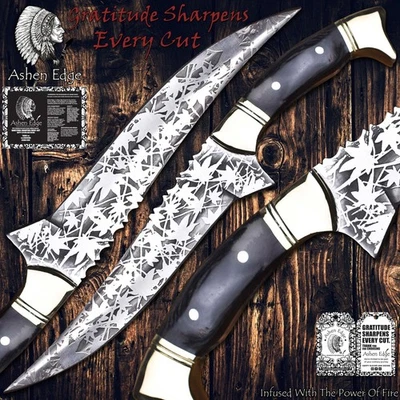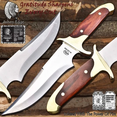 Ashen Edge Hot Item Bowie Knife AUS-10 Steel Hard Wood Brass Guard Gift Rare