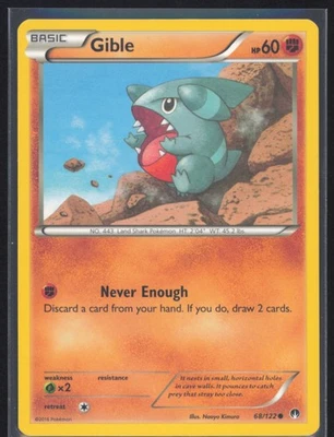 Gible Regular Non Holo 68/122 Pokémon XY: BREAKpoint MP Pokémon Card