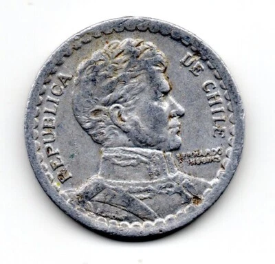 Chile 1956, Bernardo O'Higgins (1778-1842), 1 peso, aluminum.