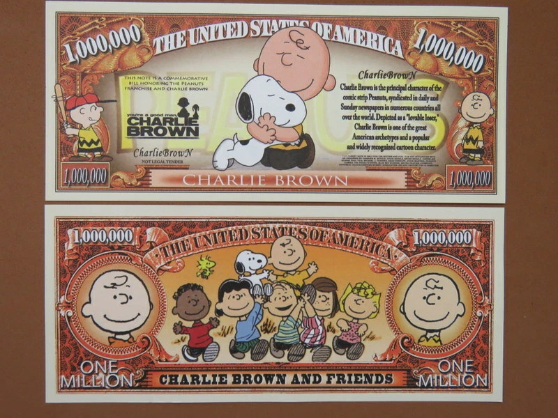LUCY: Peanuts Character with Charlie Brown ~ $1,000,000 One Million Dollar Bill