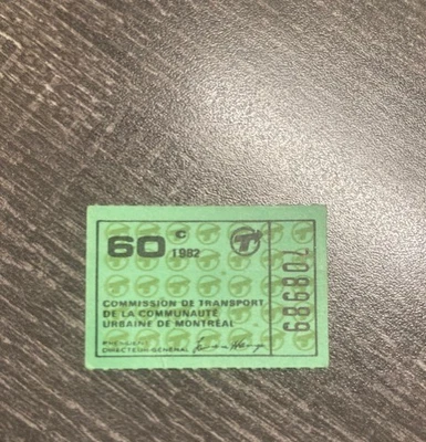 CTCUM COMMISSION TRANSPORT MONTREAL QUEBEC 1981 AUTOBUS BUS TICKET 60