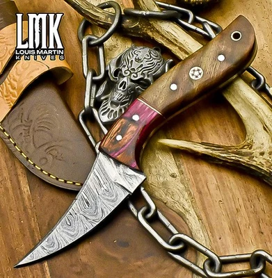 LMK Forged Skinner Knife Twist Damascus Hard Wood Wooden Bolster EDC