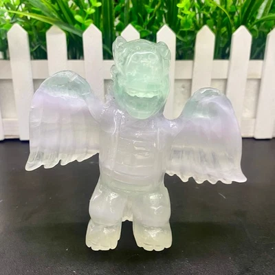 1.1LB Natural fluorite carved Flying Dragon Quartz Crystal skull Reiki Gift deco