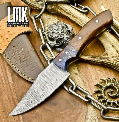 LMK Hand Crafted Skinner Knife Twist Damascus Walnut Wood Hunting