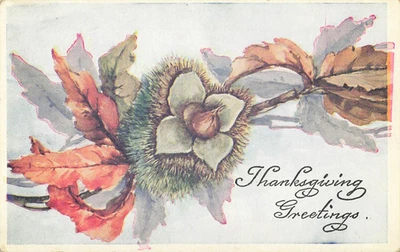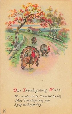 Postcard Turkey Fall Leaves House Best Thanksgiving Wishes