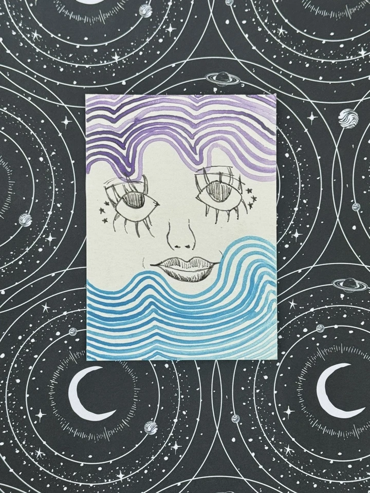 ACEO Original Watercolor Painting Zentangle Girl Series #2 Signed by Artist