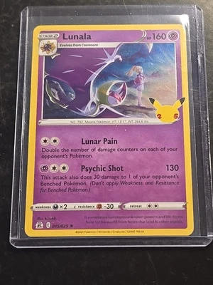 Pokemon Lunala Holo Rare Card 015/025 Celebrations 25th Anniversary NM Condition
