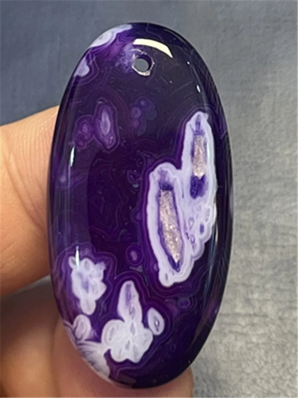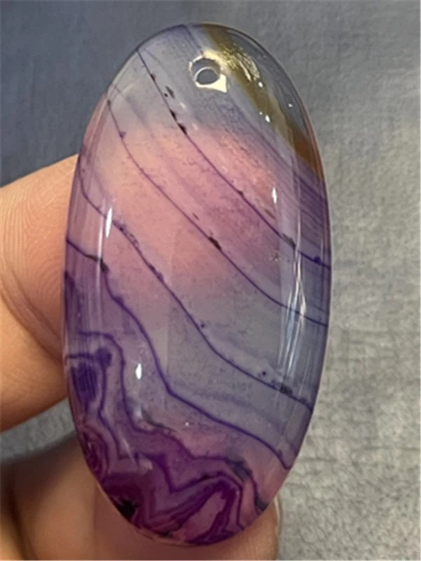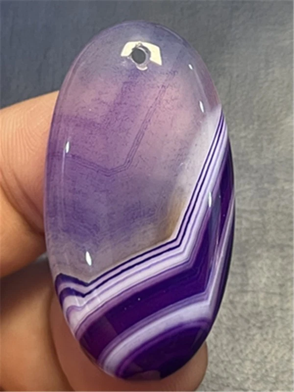 KU87792 42x22x7mm Purple/white Stripes Agate Oval Pendant Bead