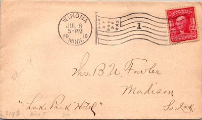 GOLDPATH: US COVER 1910 WINONA,MN.FLAG CANCEL.2C. CV928_P16