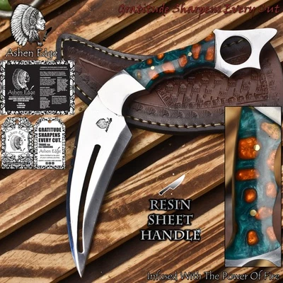 Ashen Edge Hot Item Karambit Knife ATS-34 Steel Resin Steel Bolster Outdoor