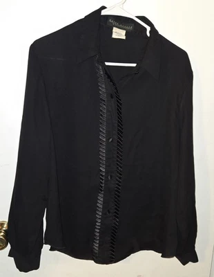 Women Size 14 Black Long Sleeve Button Up Blouse With Ruffle Front