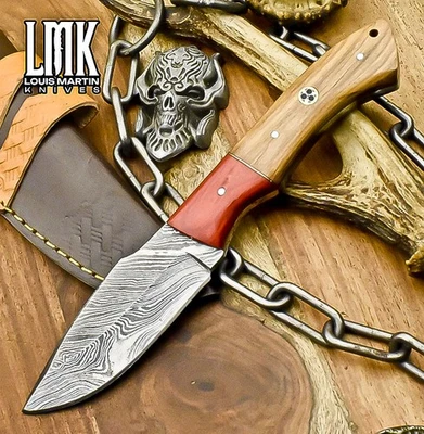 LMK Custom Forged Skinner Knife Twist Damascus Olive Wood Wooden Bolster Outdoor