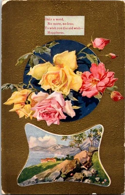 Dr Jim Stamps Postcard Embossed Flowers Nature Scene Art Happiness Verse