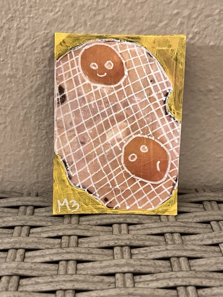 Eggs ACEO Original Mixed Media Acrylic Paint Marker Art Signed 2.5x3.5