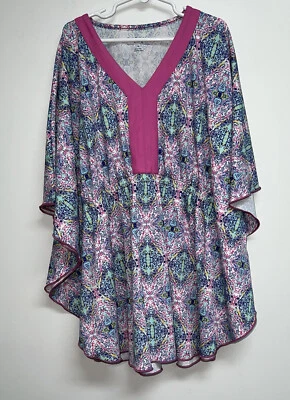 Cabana Life Girls Swim Cover Up Size 7 8 Blue Pink Flutter Sleeve Geometric