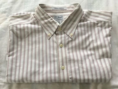 LL Bean Shirt 17.5-33 Button Up Red/Gray Stripe Wrinkle Resistant Mens Preppy