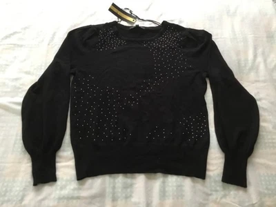 NEW Joseph A. Woman's M Black Knit Sweater w/ Rhinestone Sparkles Long Sleeves