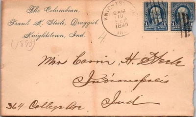 GOLDPATH: US COVER 1895 KNIGHTSTOWN,IN.PAIR,FANCY CANCEL,1C. CV928_P16