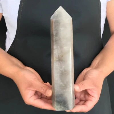 880G Natural clear quartz obelisk crystal energy column healing