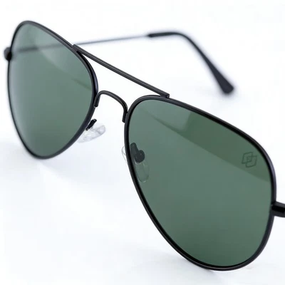 O'S OPTICAL Aviator Sunglasses Metal Black Frame Polaroid Dark Green UV400 3025