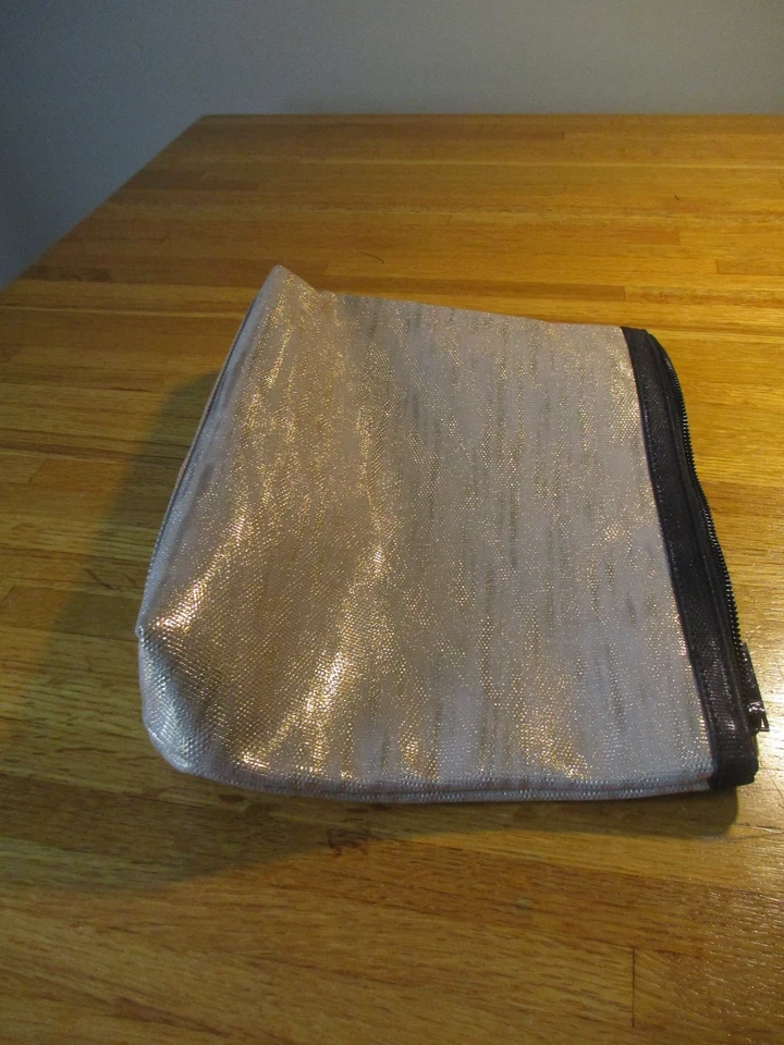 LANCOME Lined Metallic Gold Zippered Cosmetic Bag New 2025 mascara kohl pencil