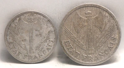 France, 1992 Franc, KM902.1, 1944 2 Francs, KM904.1, VF, NR, 1-18