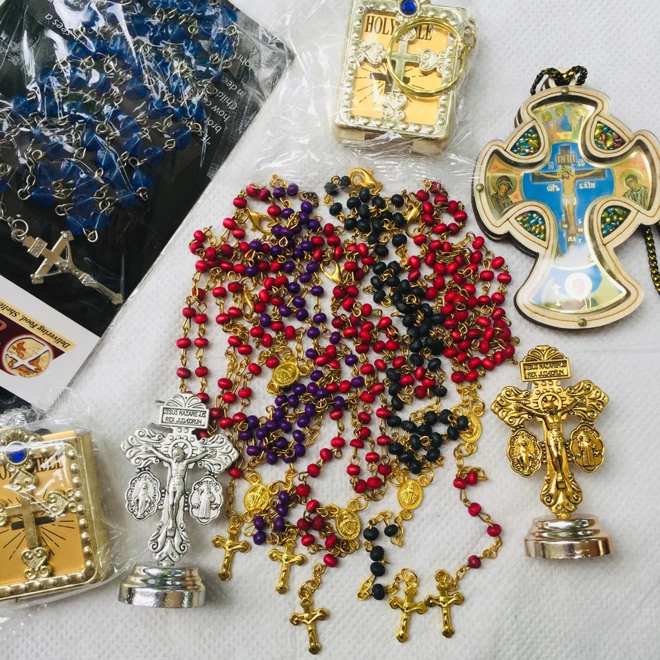 Vintage Antique Lot of Catholic Rosary Prayer Beads Religious Crucifix Necklace