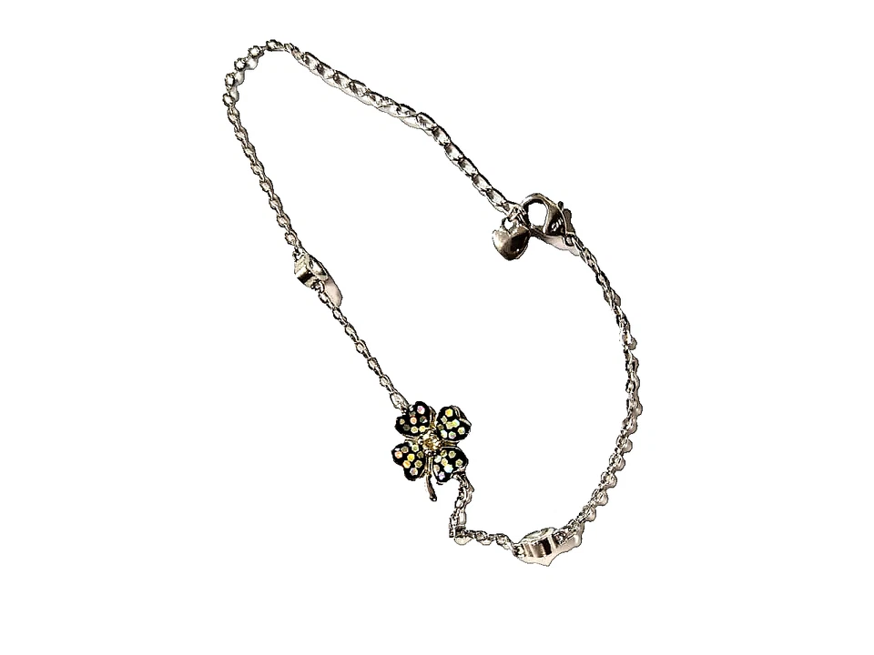 Elegant Silver-Tone Four-Leaf Clover Charm Bracelet / Anklet with Iridescent