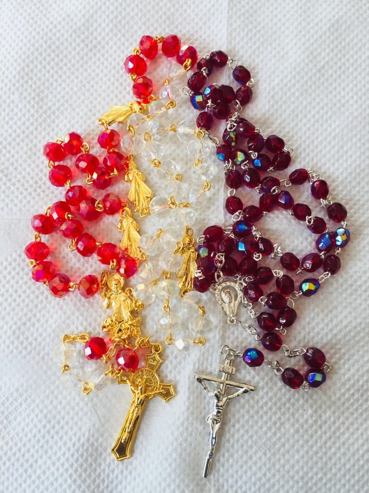 Antique Vintage Crystal Catholic Rosary Religious Prayer Bead Crucifix Necklace