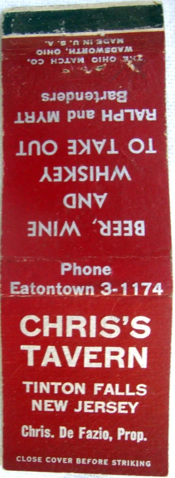 CHEIS'S TAVERN TINTON FALLS NJ VINTAGE MATCHBOOK COVER