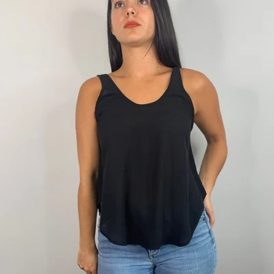 Lush Black Satin Sleeveless Tank Scoop Neck Flowy SIZE XS