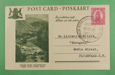 DR WHO 1952 SOUTH AFRICA SATISE OVPT UPRATED PICTORIAL POSTAL CARD EXPO R43505