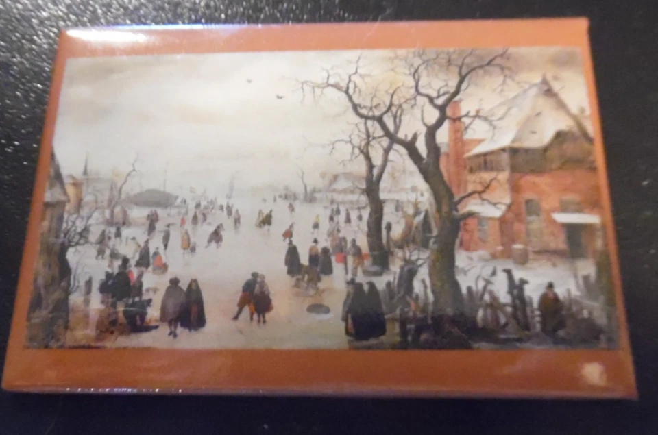 Winter landscape near a village magnet 3" x 2" -Hendrick Avercamp oil on panel