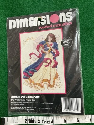 Dimensions Counted Cross Stitch 6681 Angel Of Harmony VNTG 1995 AIDA 18 Count