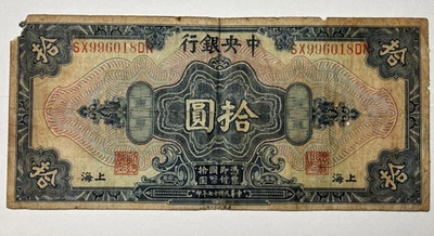 1928 Chinese 10 Dollar banknote, Used Circulated