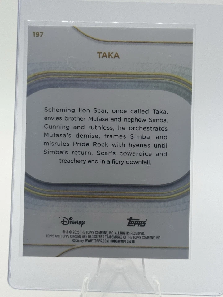 2025 Topps Chrome Disney #197 Taka Yellow Mini Diamond Refractor Debut Card