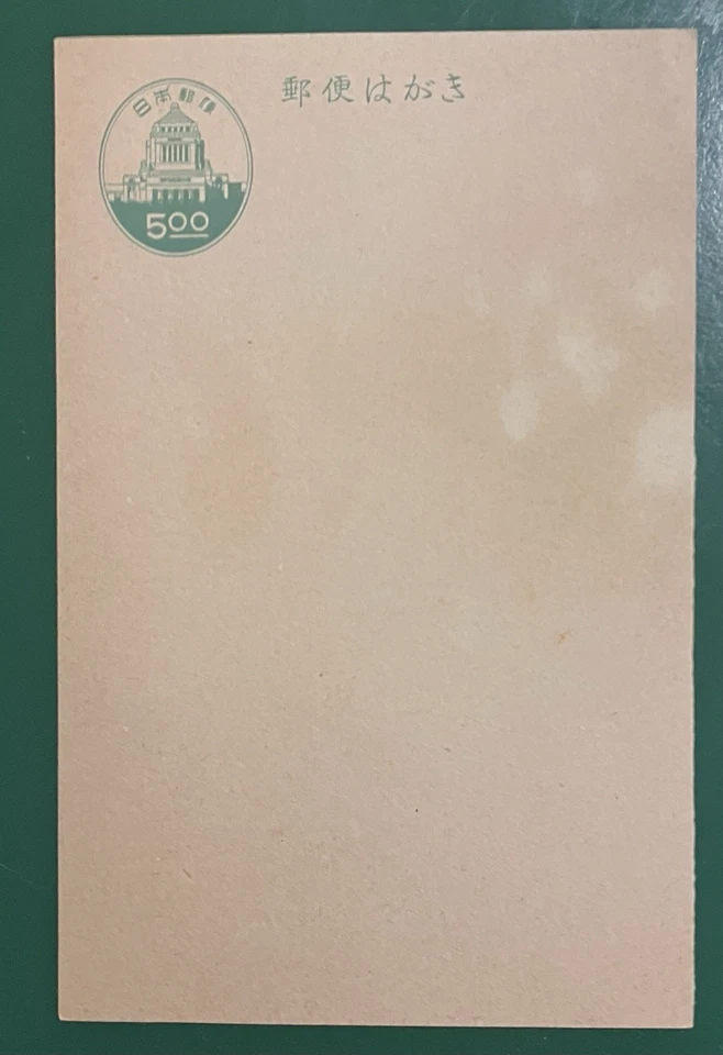 Japanese Postal Stationary Post Card Green 1950 # 58 Not Used Diet Building 5Yen
