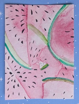 ACEO Original Watercolor Watermellon Series (4/10) Artist Signed Free Shipping