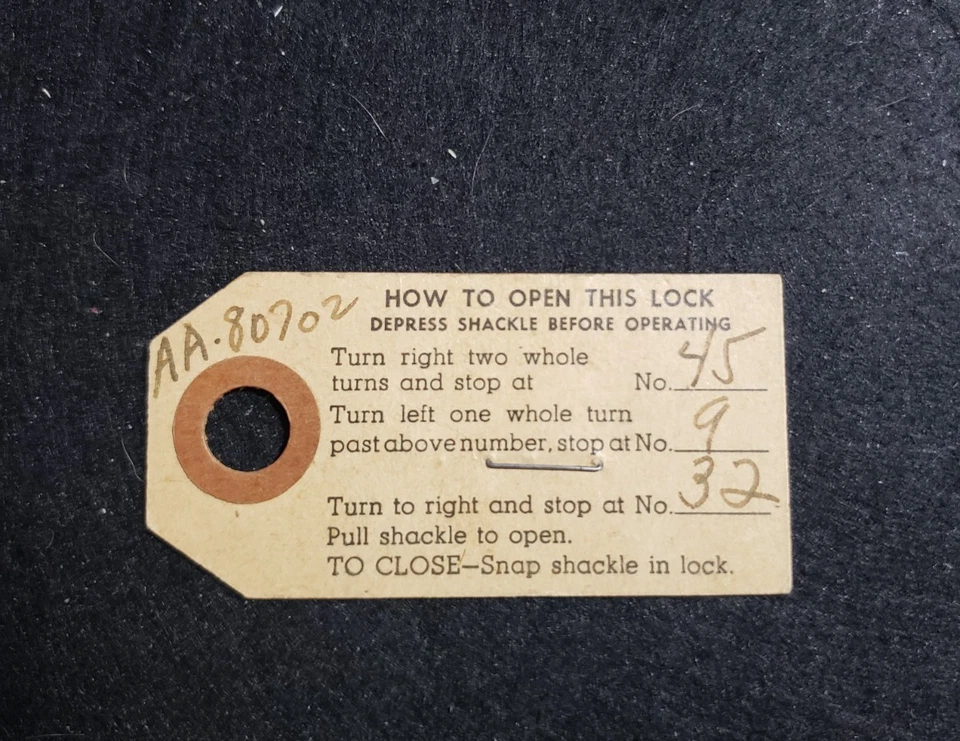 VINTAGE DUDLEY LOCK CORPORATION LOCK TAG w/ COMBINATION