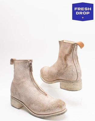 RRP €905 GUIDI Leather Ankle Boots US5 UK2 EU35 Worn Look Cracked Effect