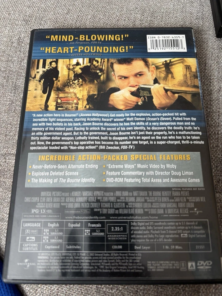 The Bourne Identity (DVD, 2003, Widescreen) Matt Damon Clive Owen, Chris Cooper