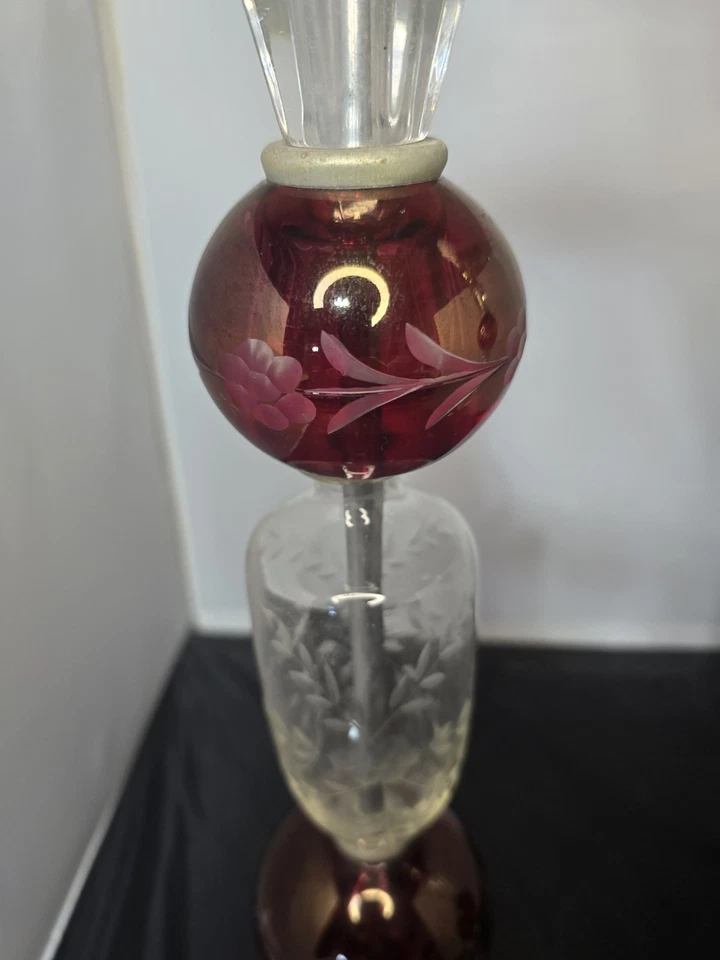 Rare Vintage Collectable Ruby Red Glass Lamp Pair Working