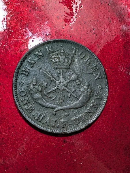 NICE DETAILS BUT A LITTLE ROUGH BANK OF UPPER CANADA 1854 HALFPENNY TOKEN #701