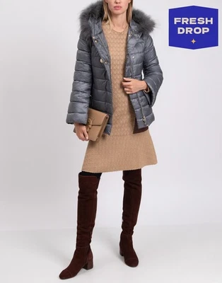 RRP€339 LIU JO Quilted Jacket IT44 US8 UK12 L Padded Detachable Raccoon Fur Trim