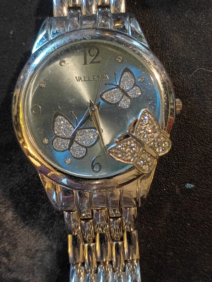 Valletta Butterfly Design Silver Gemmed Women's Wristwatch, Analog, Metal Band
