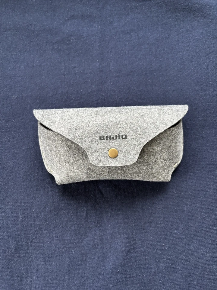 Bajio sunglass case- gray recycled felt with snap closure, fish print bag