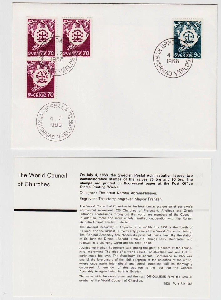 SWEDEN - RELIGION:WORLD COUNCIL OF CHURCHES 1968 FDC + INFO SHEET