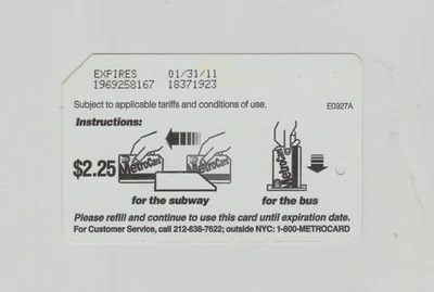 Expired Metrocard $2.25 for subway bus New York City MTA Transit Card
