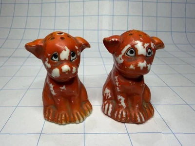 Vintage Orange Sad Puppy Dog Salt and Pepper Shakers Ceramic [CHARITY]